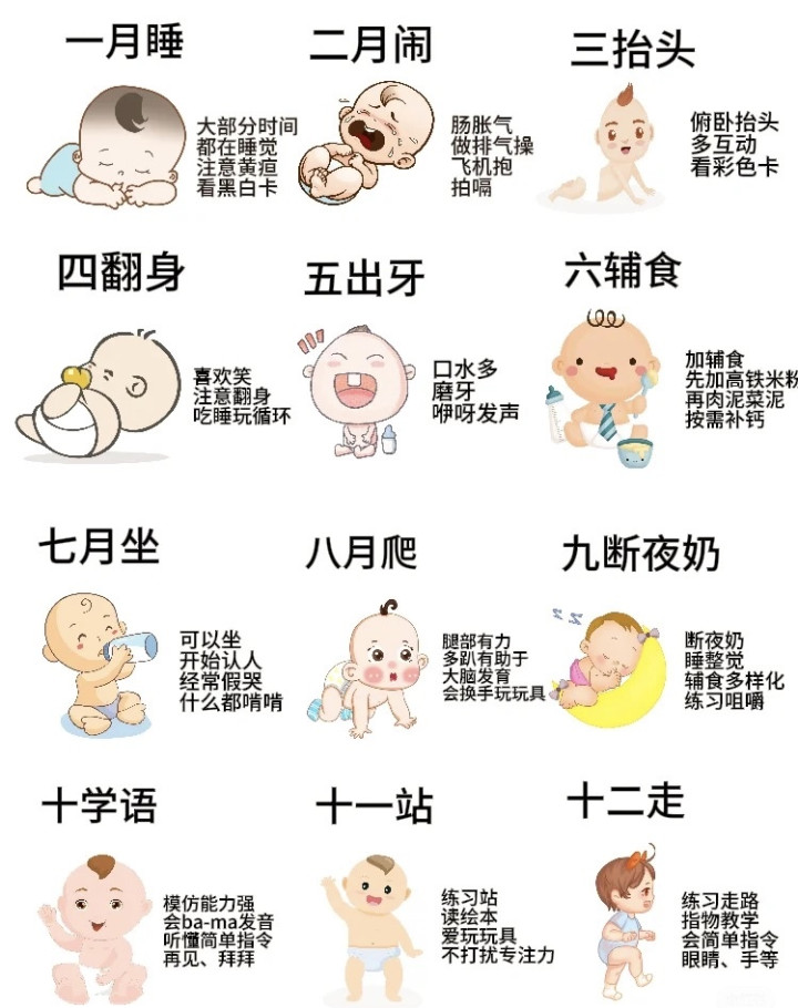 2.睡眠:宝宝的睡眠时间会逐渐减少,夜间睡眠时间会延长。建立规律的睡眠作息很重要,尽量让宝宝在固定的时间入睡和起床。